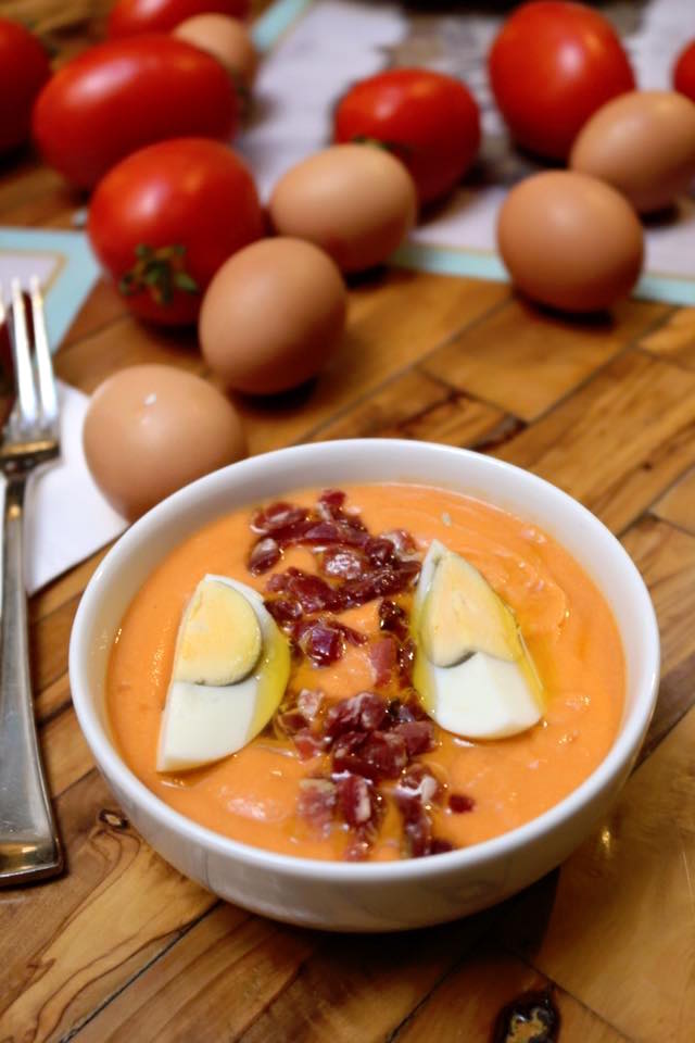 Salmorejo cordobés con huevo y jamón ibérico: Córdoba-style salmorejo with egg and Jamon