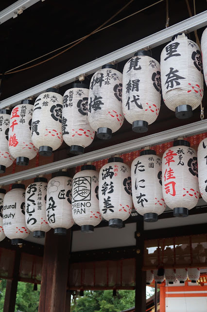 Paper lanterns over the Yasaka Shrine prayer hall stage used for cultural performance throughout the year, particularly by the geisha from nearby districts