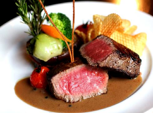 8 oz Filet Mignon served with a peppercorn cream sauce, potatoes and seasonal vegetables