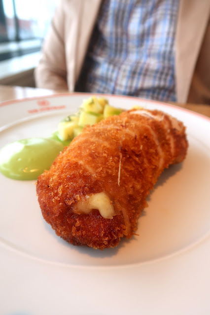 Arriving for lunch after a morning exploring The National Portrait Gallery, home to the most extensive collection of portraits in the world, we arrived at The Portrait Restaurant by Richard Corrigan and were seated at a beautiful window table with a fabulous view over the square. Beginning with a glass of champagne, we followed with a sensational lunch of Secret Smokehouse Salmon which is the finest hand cured and smoked salmon in London, served with Pomegranate, Fennel and Horseradish Crème Fraîche, and luscious White Onion and Gruyere Soup with pistachio and lime. Our entrées were a Filet of Beef with Peppercorn Sauce, Potato Pavé and Spinach Purée cooked to perfection, and delicious Free-Range Chicken Cordon Bleu with Potato Salad and Herb Mayonnaise with a side of Chunky Chips. As a sweet finalé, we shared a Damson Plum Pot de Crème with Shortbread and phenomenal Jasmine Silver Needle Tea which was absolutely delicious. Lunch was outstanding from beginning to end, and a delightful culinary discovery at the National Portrait Gallery.